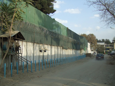 As if we hadn’t had enough exposure to security forces for the day out next tour would surely satiate our appetite for irritating men with guns. We met again with Anne Feenstra for lunch and to head out for a “field trip”. Among his many interests and concerns in Kabul, the prevalence of “security” and the way which it had been taking away piece by piece Kabul’s public realm was one. It turns out that Mr. Feenstra takes it personally when organizations set up their walls with blatant disregard for those around them, a practice that is very much taken for granted (so much so that most of the embassies and missions completely ignore a decree straight from President Karzai to remove these blockages and walls).